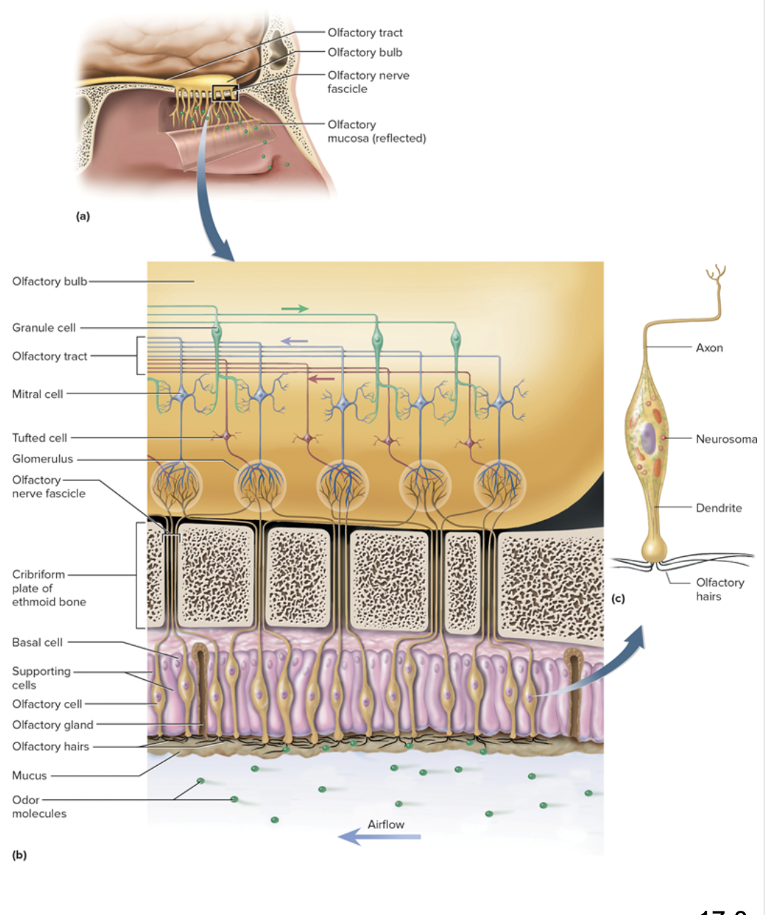 have olfactory hairs (cilia) with binding sites for odor molecules