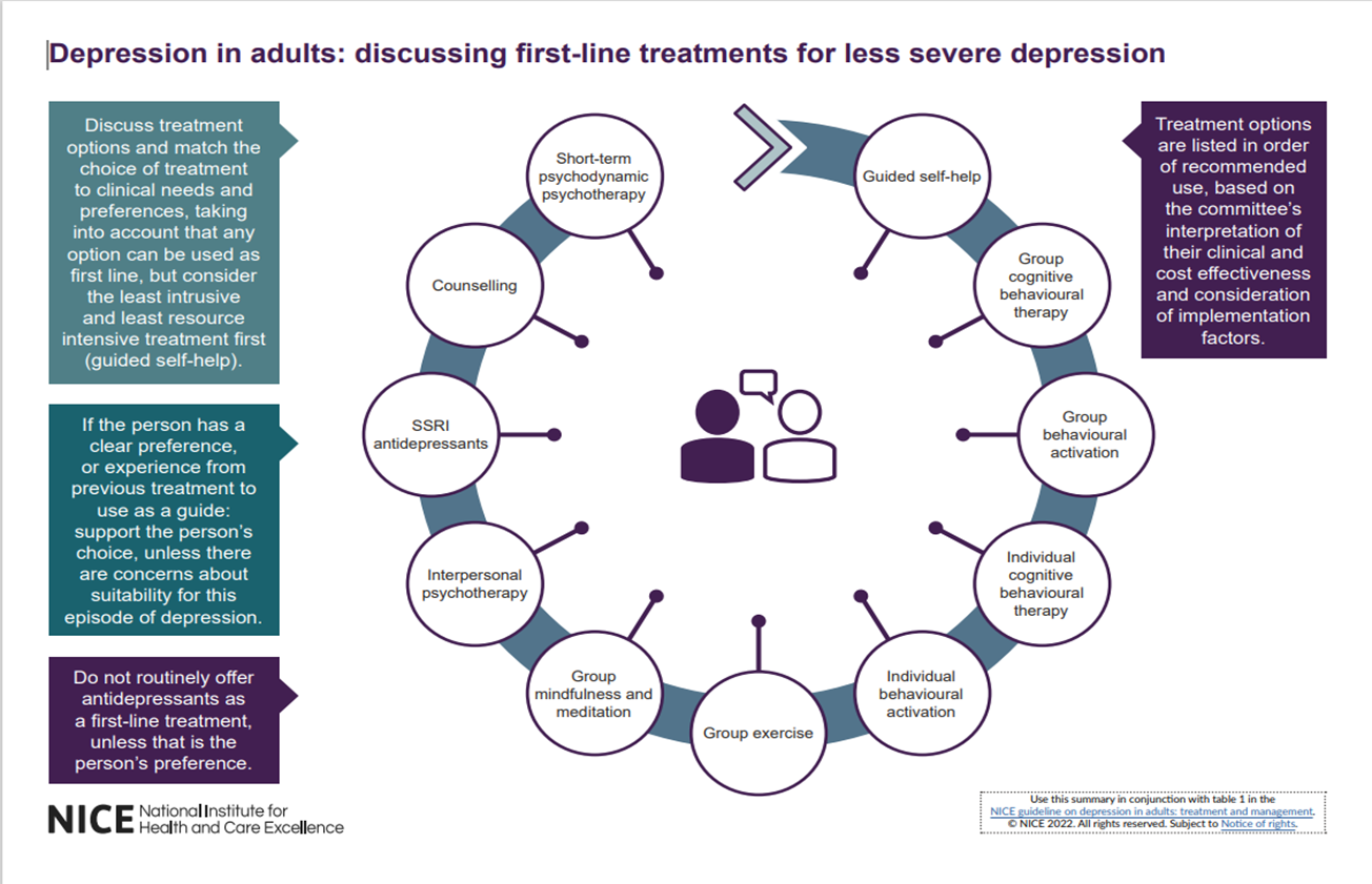 First-line treatments for less severe depression