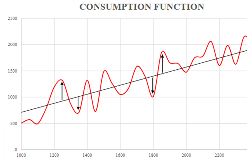 consumption function with random errors graphed