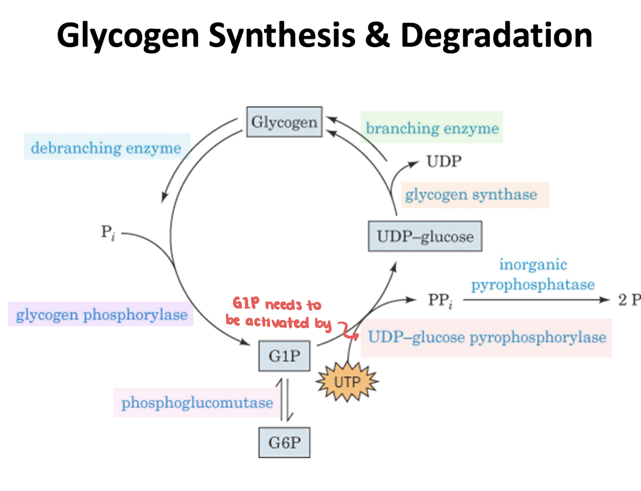 UTP is the energy we require to activate our glucose unit before we can incorporate it into our glycogen
