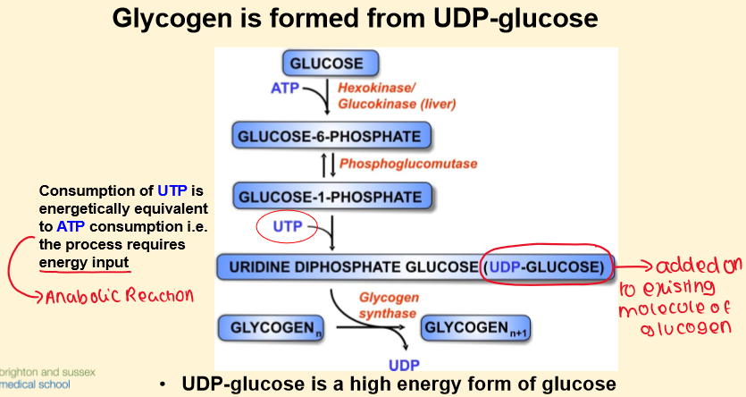 3) Glycogen is formed from dietary glucose by the process of glycogenesis