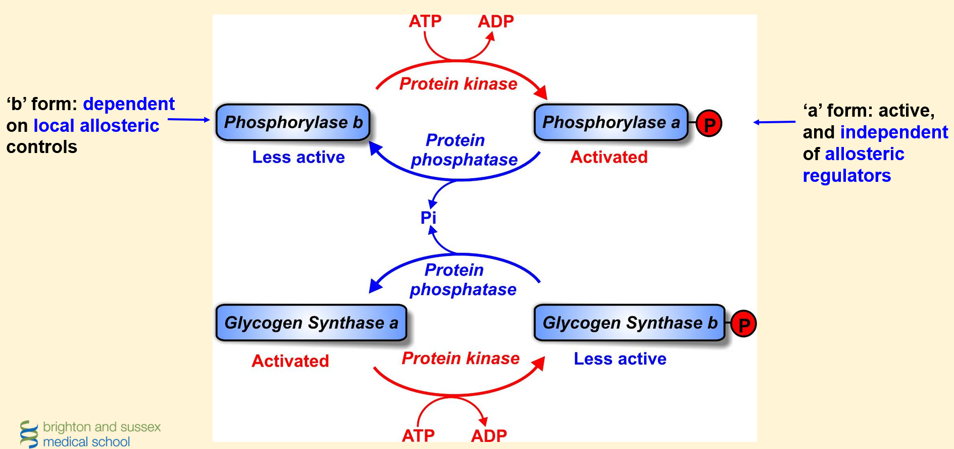 Reciprocal regulation of phosphorylase and glycogen synthase