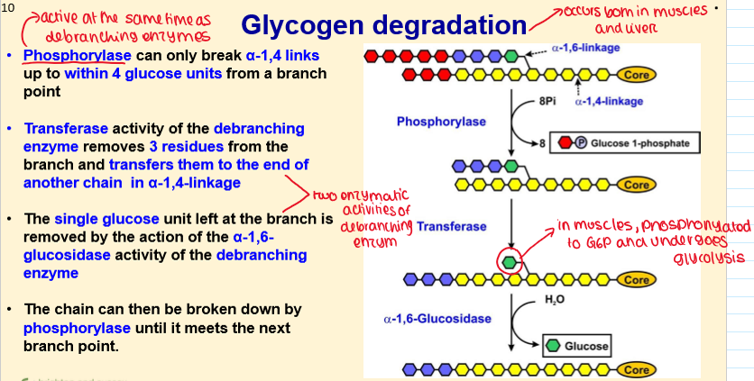 How is Glycogen degraded?
