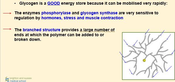 Why is glycogen a GOOD Energy Store?