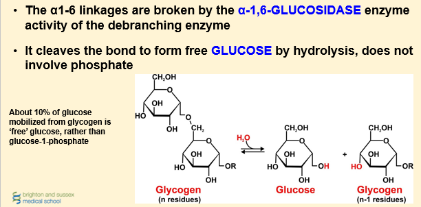 Cleavage of α-1,6-linkages at branch points
