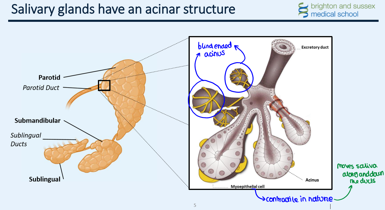 3) Contractile myoepithelial cells aid secretion