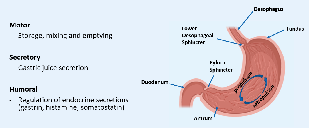 What are the MAJOR FUNCTIONS of the Stomach?