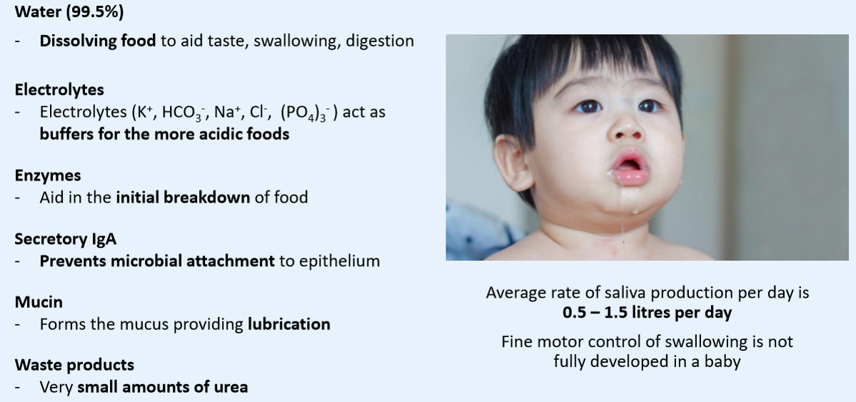 What are the COMPONENTS of Saliva?