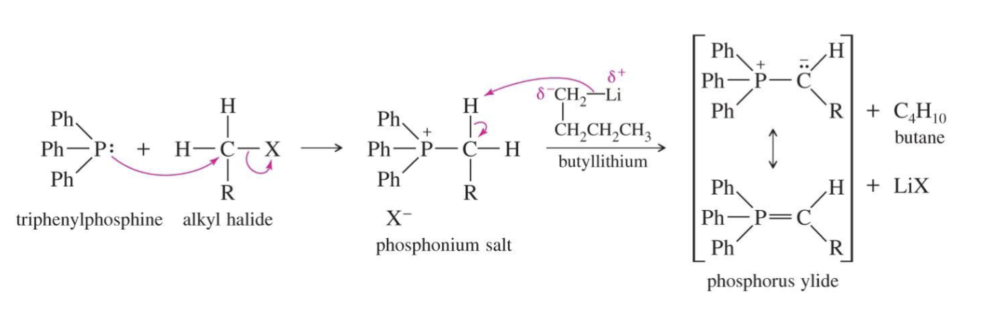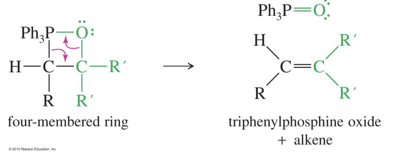 but this will collapse and the Oxygen will break its bond with carbon and leave with Ph3P and the carbon will become a double bond and then form a carbonyl (ketone or aldehyde ) see down below.