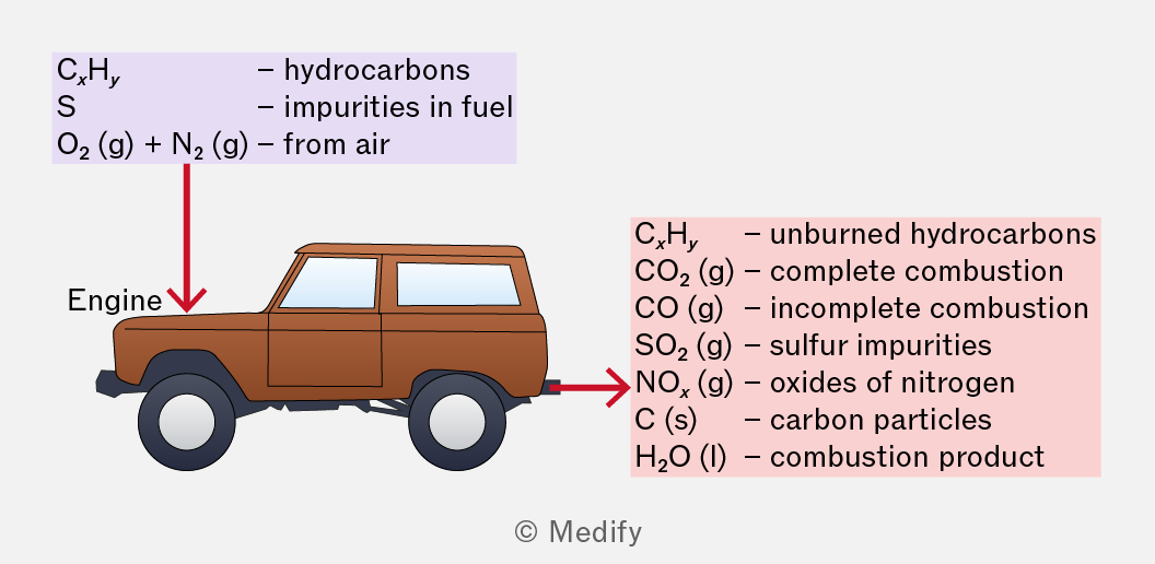 Alongside complete combustion products, other pollutants can be found within the exhaust fumes.