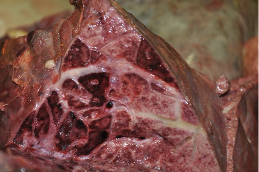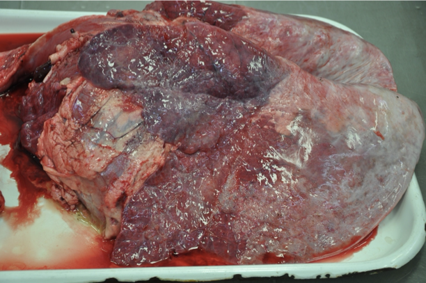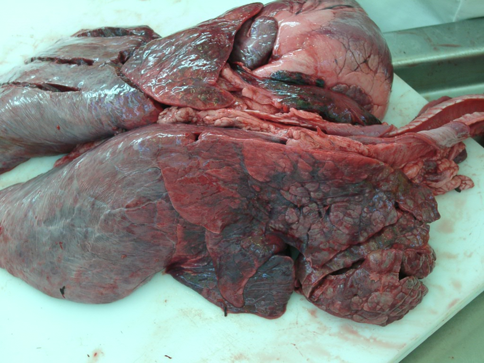 Damage to cranio-ventral lung lobes —> enzootic pneumonia