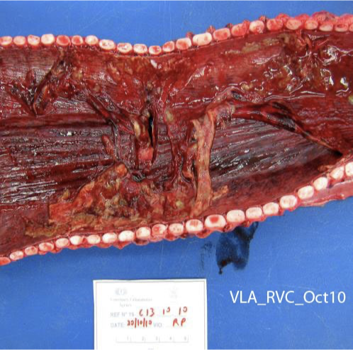 Thrombosis, necrosis, inflammatory cell infiltration in Mannhaemia haemolytica pneumonia
