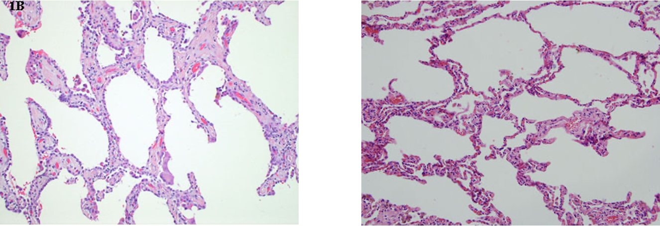 Alveolar cell thickening & hyperplasia → oxygen exchange impaired