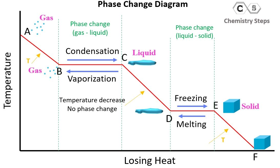 What happens to a substance that is decreasing in temperature when it goes through all 3 phases.