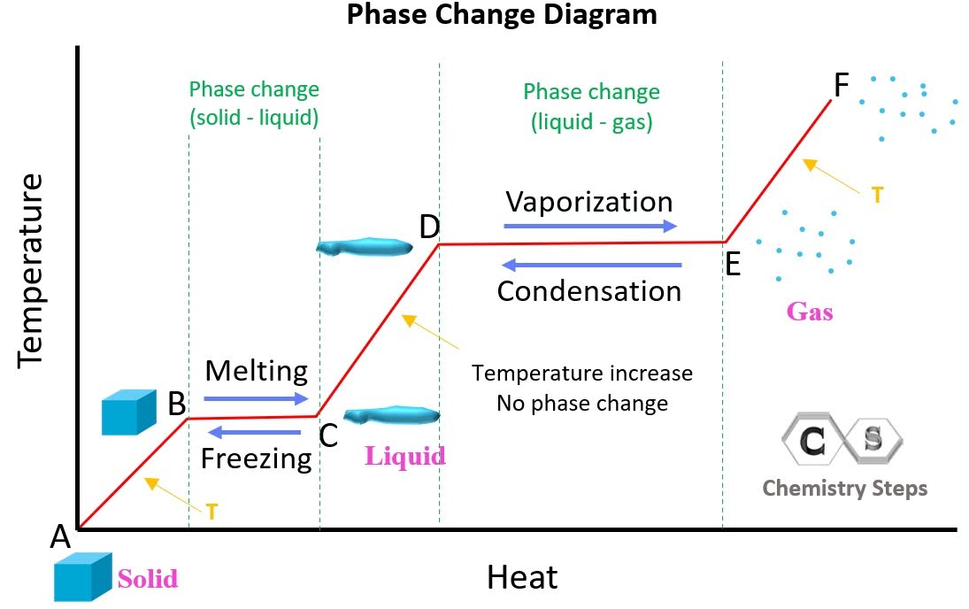 In a heating curve, the phases of matter are increasing/decreasing in temperature and kinetic energy.