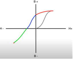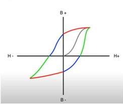 Wanneer bij een opgewekte inductie de veldsterkte nul wordt zal deze inductie niet helemaal weg zijn. Hierdoor moet een veldsterkte in tegengestelde zin opgewekt worden om de inductie te verwijderen. Door dit wordt er een tegengestelde inductie gegenereerd waardoor je weer een veldsterkte moet wekken naar de originele zin.