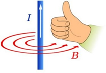 Dit is het magnetisch verschijnsel als er een stroom vloeit. Deze zijn cirkelvormig rond de geleider. Dit kunnen we bepalen met de kurkentrekker regel of de rechterhandsregel.