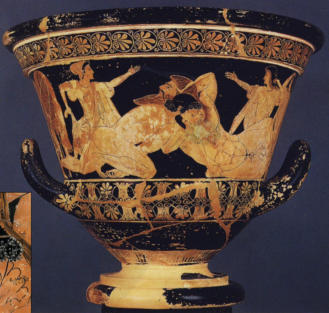 Attic Red-figure Calyx Krater by Euphronios: Herakles and Antaios, ca. 510-500 BCE, H: 19”