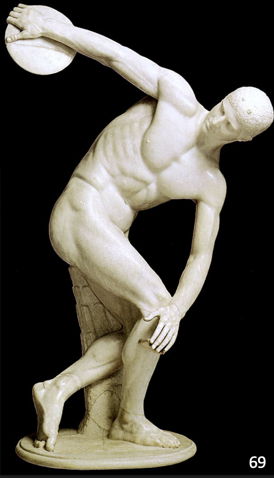 Diskobolos (Discus Thrower) by Myron, Roman marble copy of a Greek bronze original of ca. 450 BCE