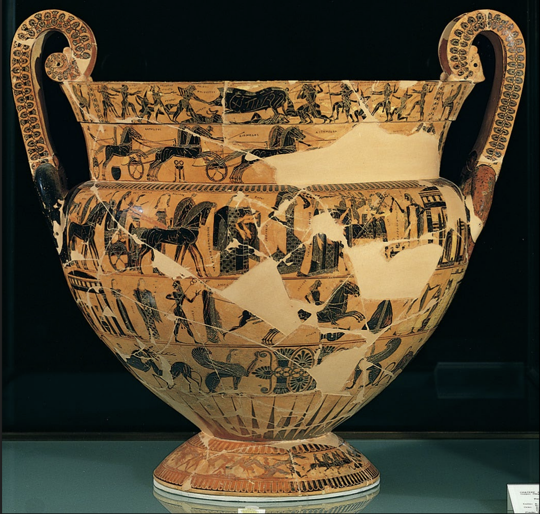 Franҫois Vase, Attic Black-figure Volute Krater, by Kleitias (painter) and Ergotimos (potter), from Chiusi, Italy, 570 BCE,