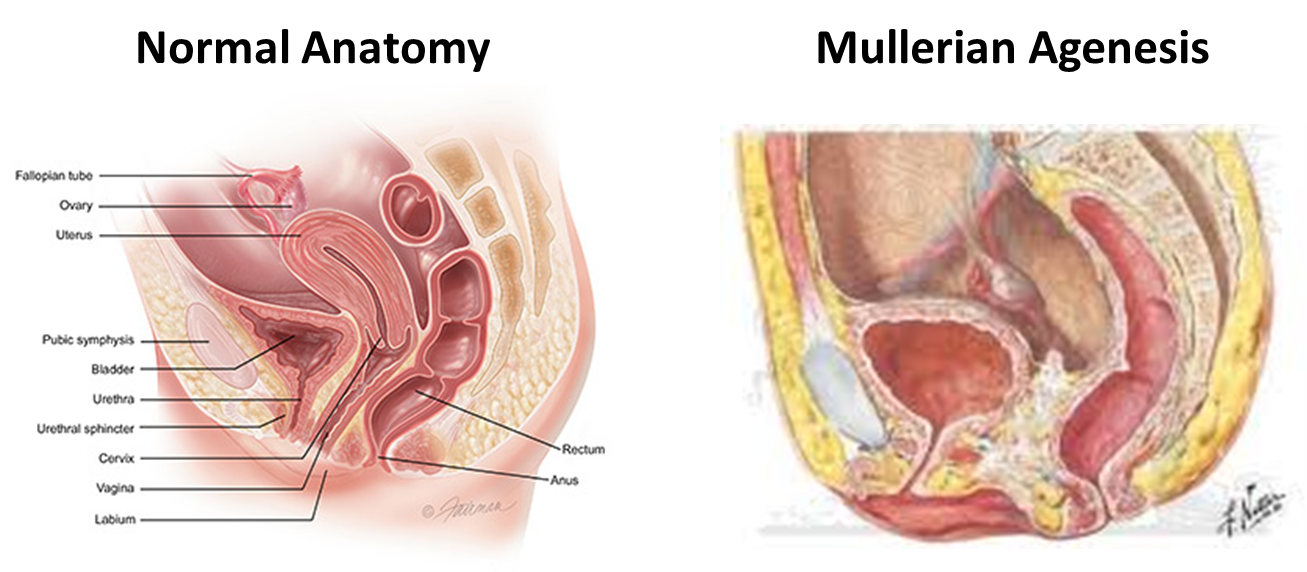 → patients are XX females with normal ovaries but patients will lack a uterus and vagina