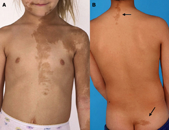 → cafe-au lait spots will not cross midline and have a bumpy “coast of Maine border”