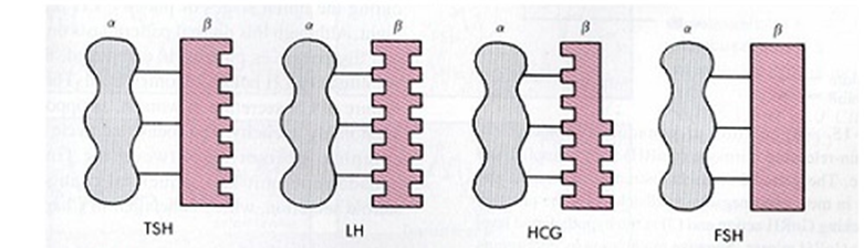 The alpha subunit of TSH, HCG, LH, and FSH are all very similar so they can have cross-reactivity