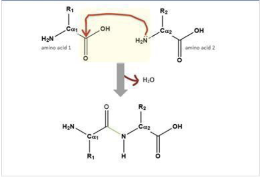 nucleophilic addition-elimination rxn between the carboxyl and amino groups of adjacent aminos acids
