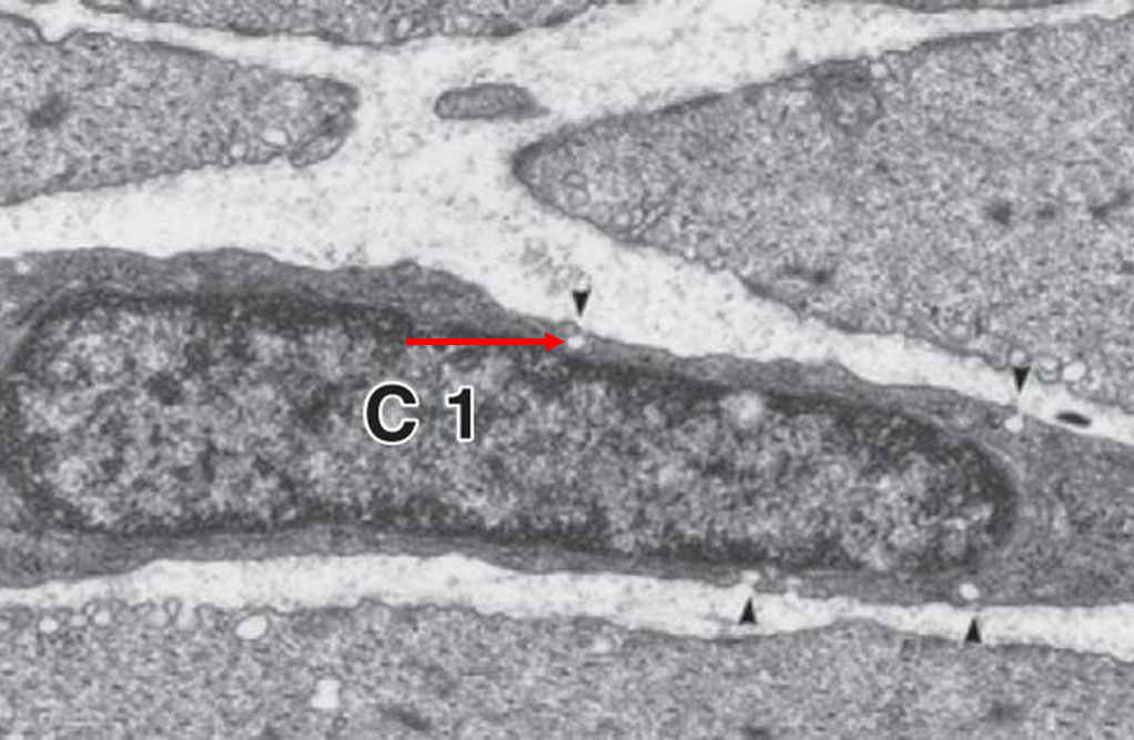 Pinocytotic vesicles (Subsarcolemmal caveolae) ทำหน้าที่ส่งกระแสประสาทไปยัง receptor