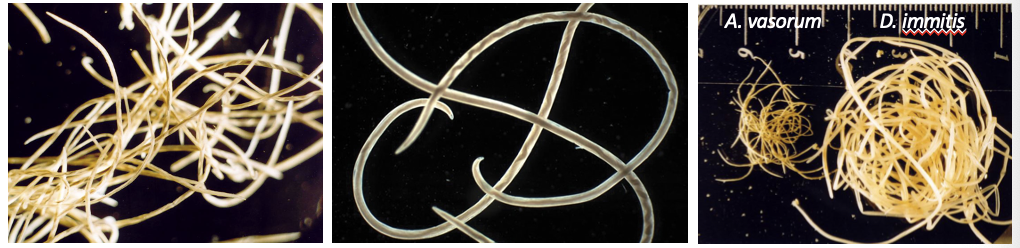 2cm long (a lot smaller than dirofilaria immitis)