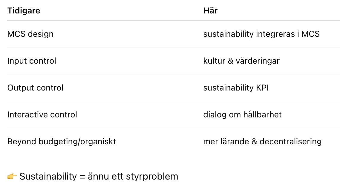 ((Simons’ Levers of Control applicerat på hållbarhet))