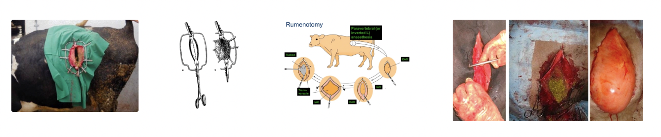Indicated with exploratory laparotomy, LDA/RDA, caecal dilation, mesenteric torsion, intussusception