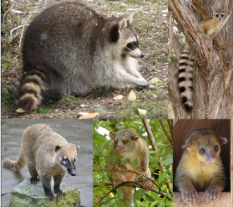 ringtails, coati, kinkajou, raccoon