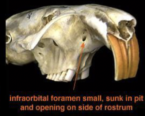premaxillae expand laterally & seperate anteriorly