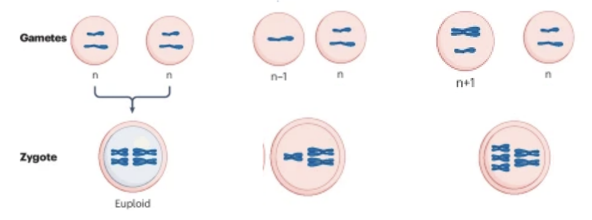 Si un gamète n-1 est fécondé par un gamète n, un zygote monosomique (2n-1) est produit.