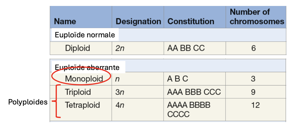 Seulement un jeu de chromosome (n=#)
