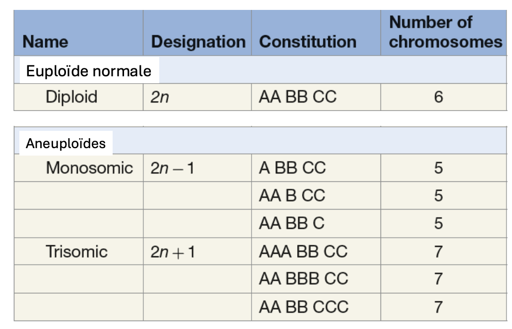Aneuploïdie pour les organismes diploïdes