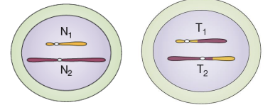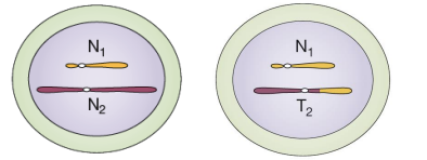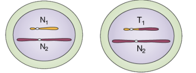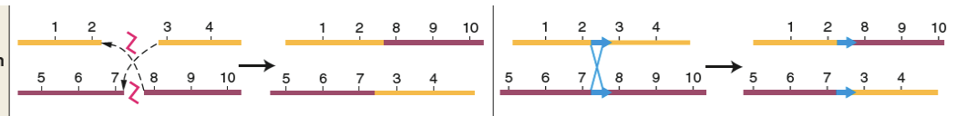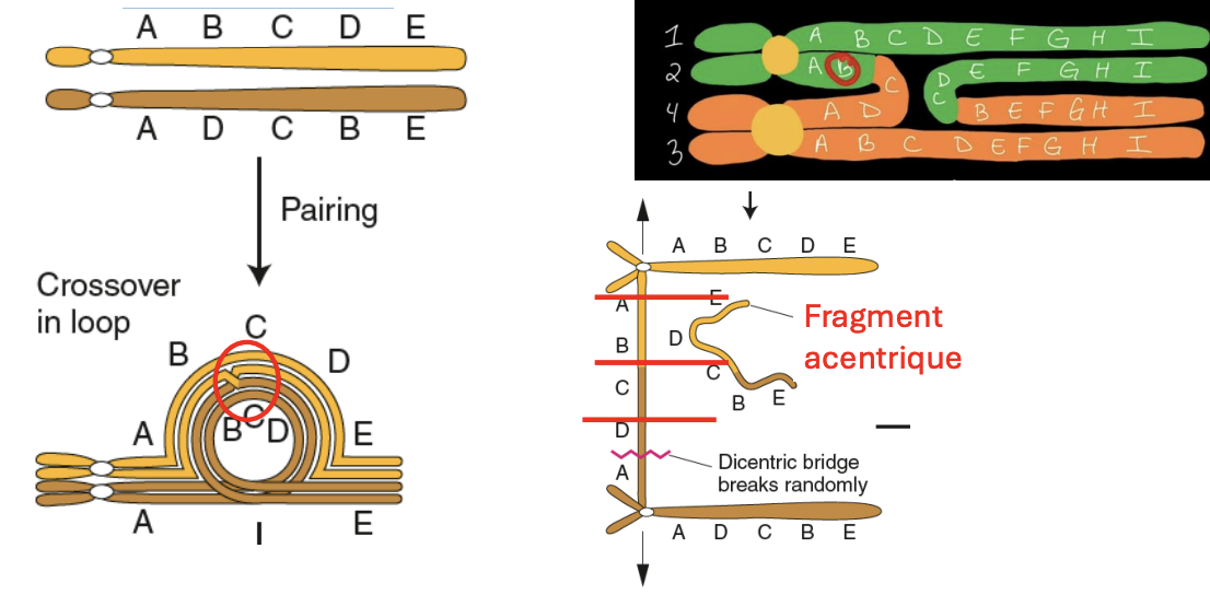 Deux chromosomes non homologues échangent des fragments acentriques