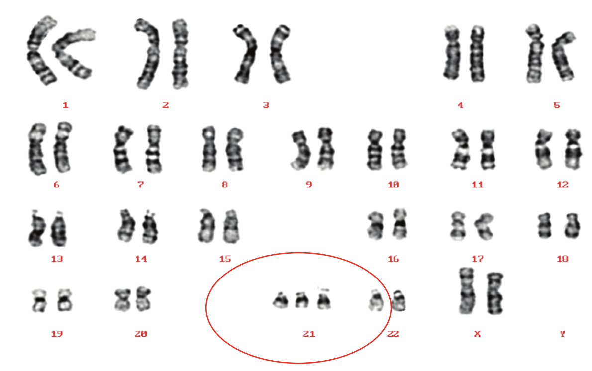 47, XX+ 21 ou 47, XY +21