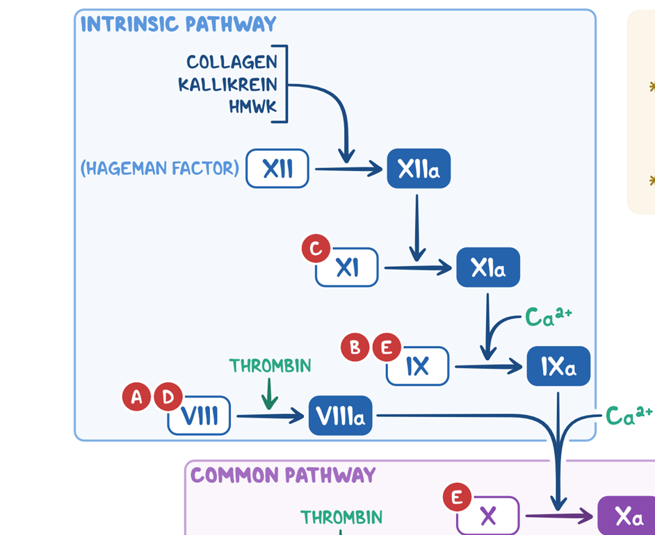 Hageman Factor (XII) → XIIa via collagen, kallikrein, HMWK