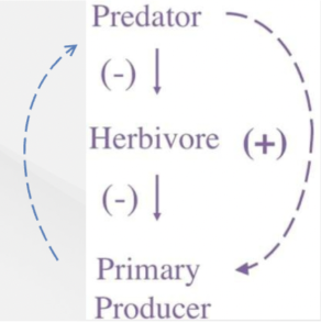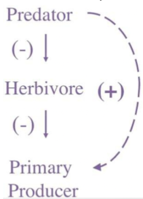 A process where predators suppress or alter the behavior of their prey, which then indirectly affects the next trophic level