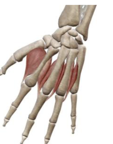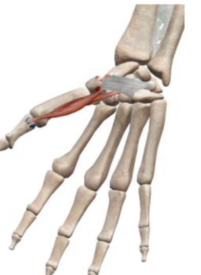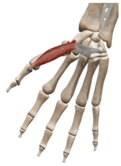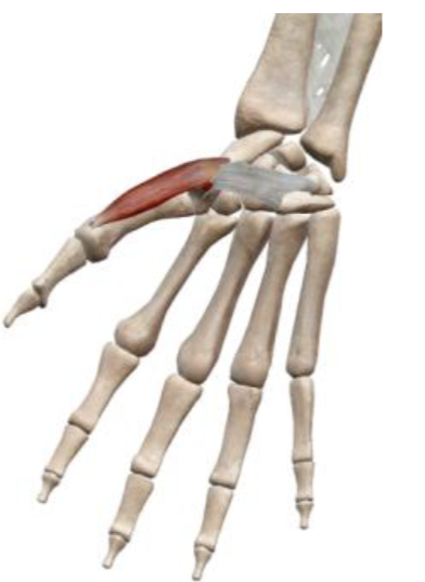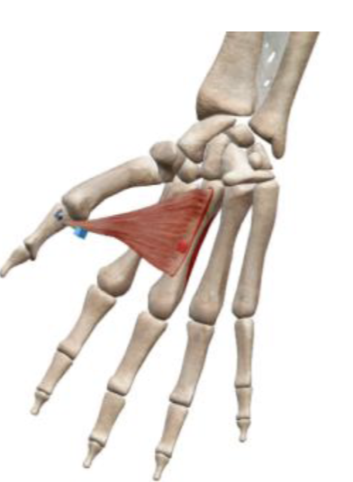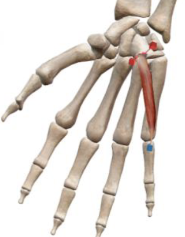 Flexion of CMC and MCP of thumb, assists in thumb adduction