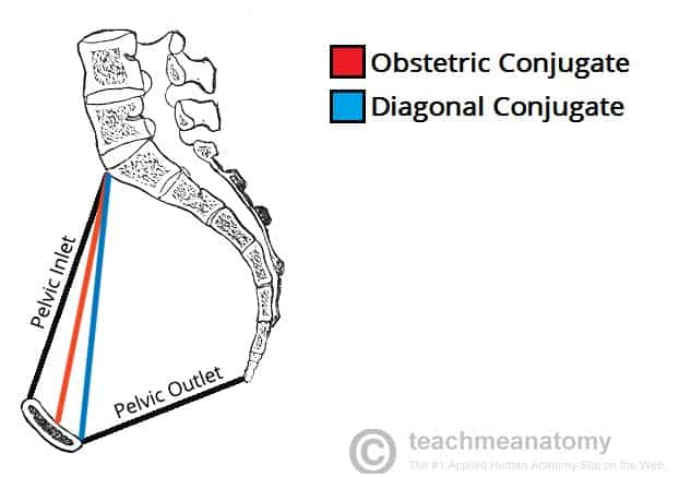 Distance from sacral promontory to pubic symphysis; narrowest fixed AP diameter of pelvic inlet.