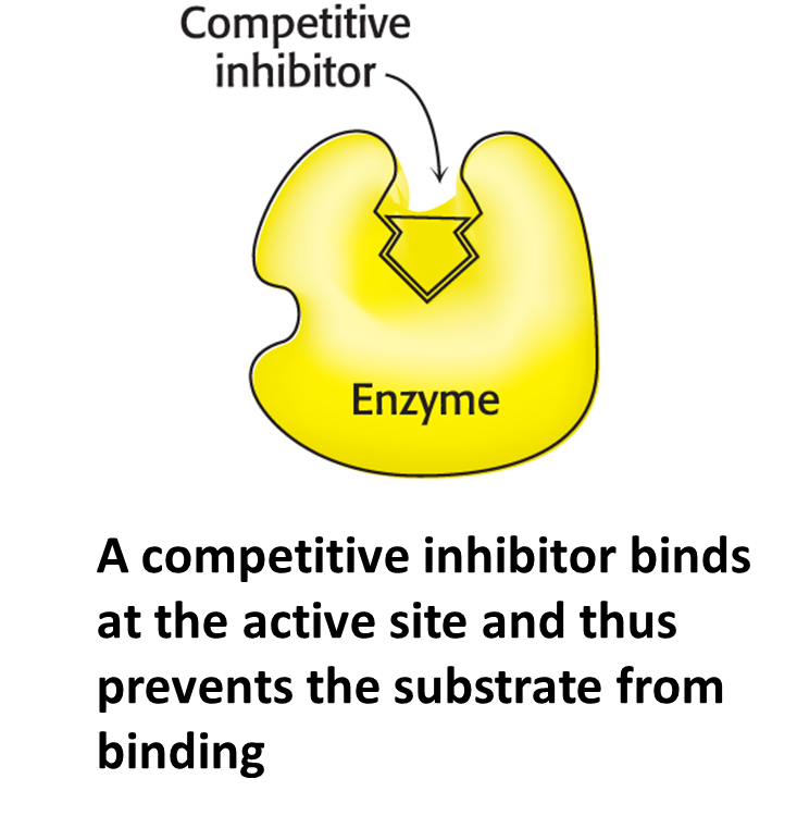 The inhibitor is structurally similar to the substrate and can bind to the active site, preventing the actual substrate from binding.