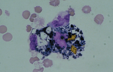 yellow - conversion of oxyhemoglobin to unconjugated bilirubin