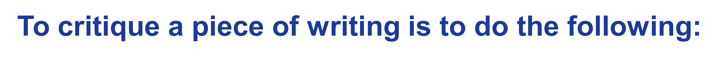 To critique a piece of writing is to do the following: