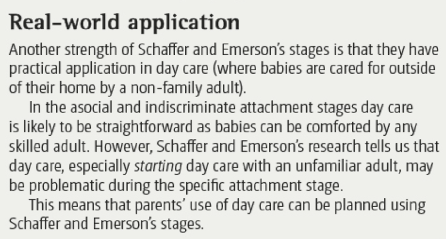 What is a strength of Schaffer and Emerson’s stages? Real-world application.