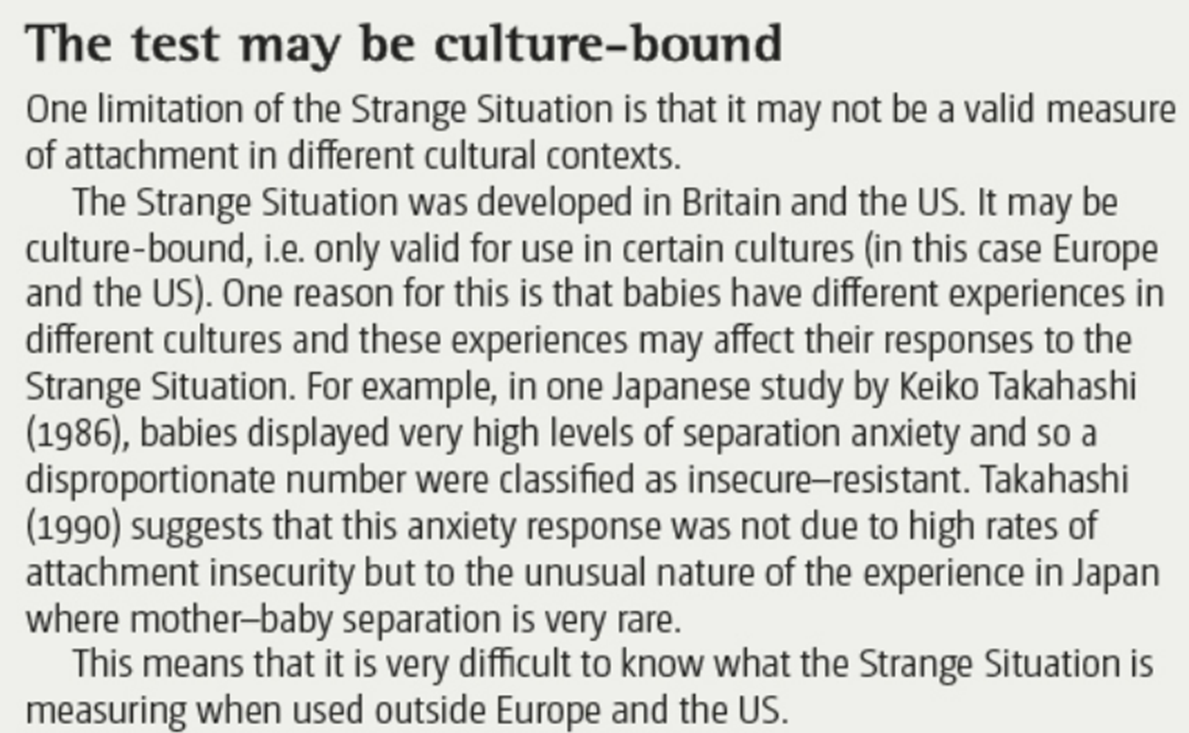 What is a limitation of Ainsworth’s (1978) strange situation? ethnocentric