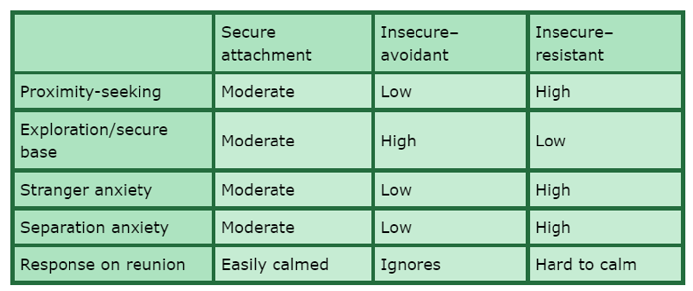 There were distinct patterns in the way that infants behaved and these could be divided into three main types of attachment: