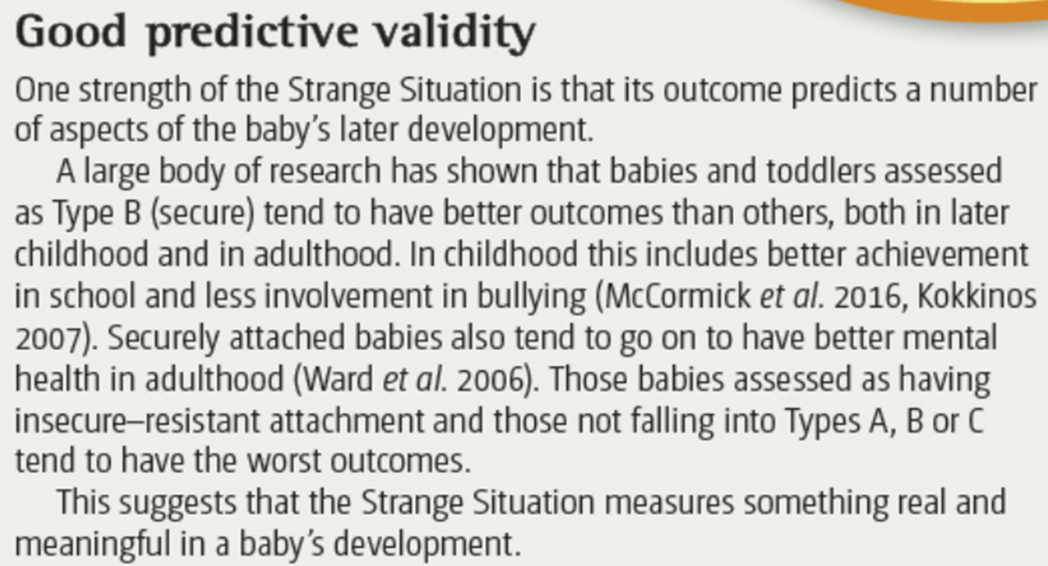 What is a strength of Ainsworth’s (1978) strange situation? validity